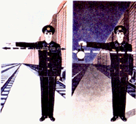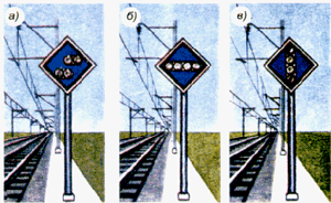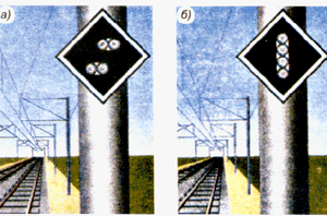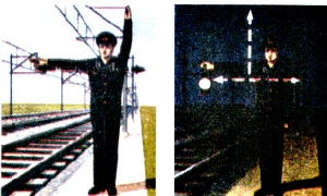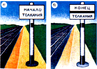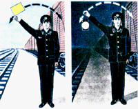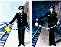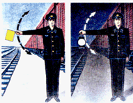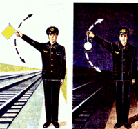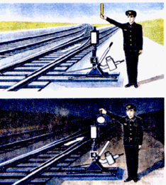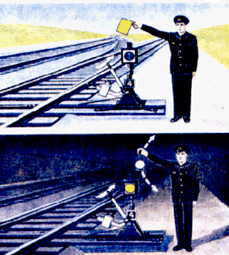 для подачи таких сигналов служат диски, щиты, флаги и сигнальные указатели (стрелочные, путевого заграждения);