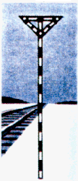 Мачты заградительных и предупредительных светофоров имеют отличительную окраску - чередующиеся черные и белые наклонные полосы.