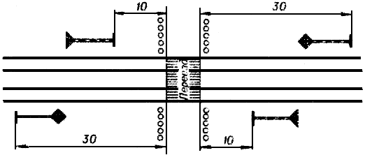 прикрытия - для ограждения мест пересечений железнодорожных путей в одном уровне, а также с трамвайными путями;