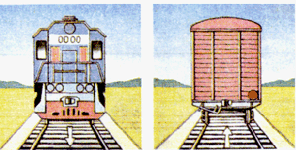 ночью - двумя желтыми огнями буферных фонарей (рис. 6.12, а); хвост обозначается, как хвост одиночно следующего локомотива.