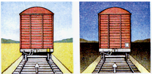 ночью - двумя желтыми огнями боковых фонарей, а в сторону локомотива - двумя прозрачно-белыми контрольными огнями (рис. 6.11).