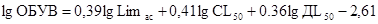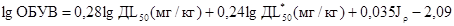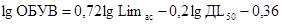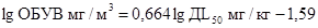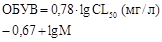 и других параметров токсикометрии расчет величины, ОБУВ, проводят по приведенным ниже уравнениям.