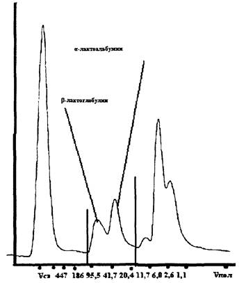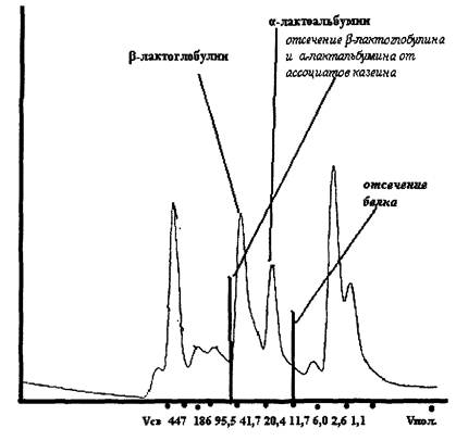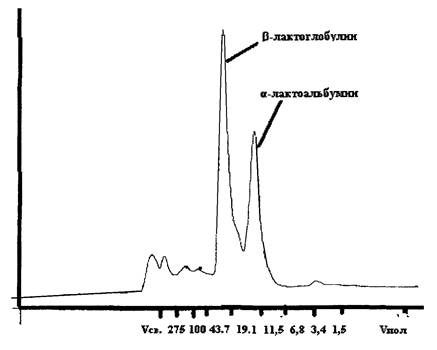 Метод идентификации белков молока основан на хроматографическом разделении с помощью эксклюзионной жидкостной хроматографии высокого давления белков водорастворимой фракции коровьего молока (предварительно обезжиренного и отфильтрованного).