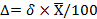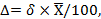 δ - граница относительной погрешности методики (показатель точности в соответствии с диапазоном концентраций, таблица 1), %.