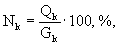 3.6 Норматив расхода подготовленной нефти в качестве топлива для выработки теплоносителя с целью его закачки в пласты для увеличения нефтеотдачи в k-м предприятии акционерного общества - отношение массы подготовленной нефти, необходимой в качестве топлива для выработки теплоносителя с целью его закачки в пласты для увеличения нефтеотдачи в k-м предприятии акционерного общества за год к массе годовой добычи нефти k-м предприятием, выраженное в %, вычисляется по формуле: