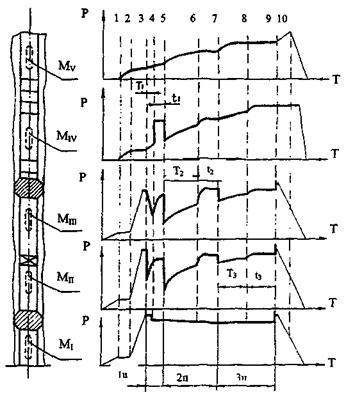 1.4 Испытание пласта - технологический комплекс работ в скважине, связанный со спуско-подъемными операциями инструмента, созданием глубокой депрессии на пласт, многоцикловым вызовом притока пластовой жидкости и отбором глубинных проб, с обязательной регистрацией диаграмм изменения давления и температуры на забое и в трубах и определением гидродинамических параметров пласта.