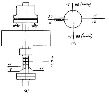 Для измерения биения зеркальной поверхности диска обычно применяют контактные тензометрические датчики малых перемещений (тензобалочки). Они устанавливаются в межсегментном канале на неподвижной части подпятника (обычно на упоре, препятствующем смещению сегмента в направлении вращения) и упираются с натягом 0,2 - 0,3 мм в зеркальную поверхность диска. Наконечник, упирающийся в зеркальную поверхность диска, выполняется из фторопласта или имеет на конце шарик от шарикоподшипника.