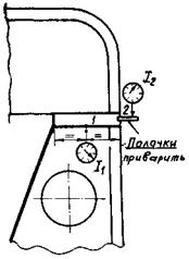 Измерение температуры воды T1 и T2 должно производиться термометрами с ценой деления 0,1 °С, имеющими поверочные свидетельства с поправками. Термометры устанавливаются в карманы, врезанные в трубопроводы подвода и отвода воды. Измерения производятся в установившемся тепловом режиме. Для увеличения точности измерений целесообразно производить их при пониженном расходе воды, так как при этом увеличивается разница температур воды на входе и выходе.