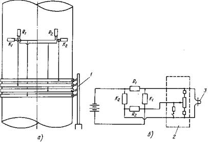 1 - тензометры для измерения осевого усилия; 2 - тензометры