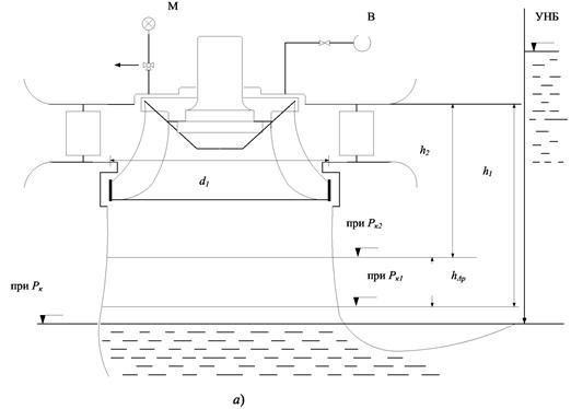 h1 и h2 - расстояние от крышки турбины до уровня отжатия (см. рис. 1).