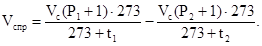 Таким образом, если емкость воздухосборников (системы) - Vc, начальное (перед отжатием воды) и конечное (после отжатия) избыточное давление в них Р1 и Р2 и соответствующие температуры в них t1 и t2, то израсходованный на отжатие до установленного уровня объем воздуха (м3) составит