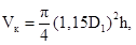 Ш.5.3 Емкость камеры Vк (м3) определяется по действительным размерам проточной части, заполняемой сжатым воздухом при отжатии воды до отметки уровня отжатия. Для сравнения объемов одной камеры при проведении серии отжатий можно пользоваться формулой для приближенного расчета и не учитывающей емкость камеры рабочего колеса турбины и другие емкости, обусловленные конфигурацией проточной части: