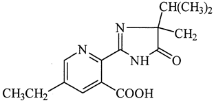 (RS)-5-этил-2-(4-изопропил-4-метил-5-оксо-2-имидозолин-2-ил) никотиновая кислота (IUPAC).