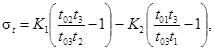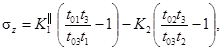 10.5. Если величины t01, t02 различаются существенно (более чем на 1,5 % - 2 %), материал считают анизотропным и расчет двухосного НС проводят по формулам: