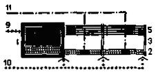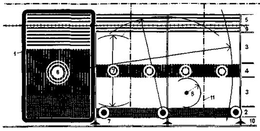 1 - зона общезаводских объектов; 2 - предзаводская зона; 3 - производственная зона; 4 - подсобная зона; 5 - складская зона; 6 - общезаводские объекты; 7 - межпроизводственные объекты; 8 - межцеховые объекты; 9 - железные дороги; 10 - автодороги; 11 - коммуникации