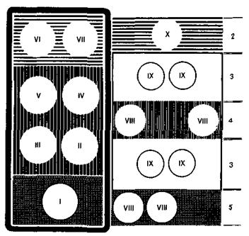 6.3. Здания, образованные объединением в одном объеме блоков различного назначения, таят в основе своей структуры ряд композиционных возможностей, позволяющих использовать следующие приемы (рис. 23):