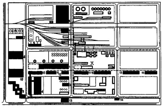 Каждый блок, снабженный коммуникациями, автодорогами и обслуживающими объектами межпроизводственного назначения, является автономной единицей освоения территории.