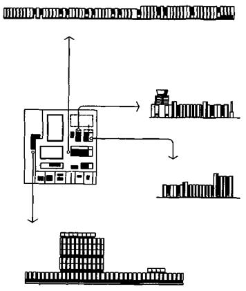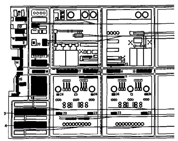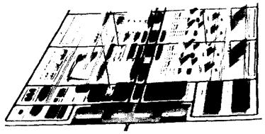 Для этого необходимо, чтобы зоны обслуживающих объектов обладали цельностью, а дороги и коммуникации имели хорошо «читаемый» рисунок в пространстве. Объекты этих зон должны обладать определенным стилевым единством, вытекающим из их комплексного архитектурно-художественного решения, которое при зонированном расположении обслуживающих объектов может быть решено на основе контраста с архитектурой зданий основного производственного назначения (рис. 19). При менее организованном размещении объектов, напротив, целесообразно нюансное соотношение архитектурно-художественных решений объектов основных и обслуживающих производств (рис. 20).