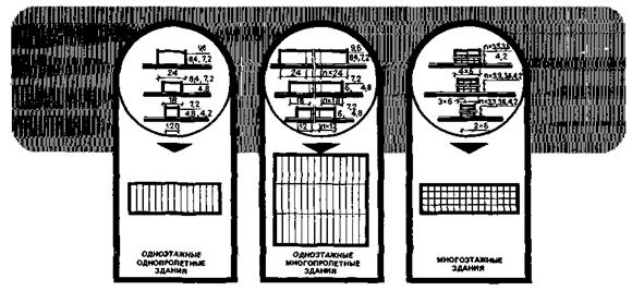Здания подсобного, складского и вспомогательного назначения следует дифференцировать в зависимости от того, какого рода документация может быть предварительно разработана в помощь проектировщикам для решения отдельных объектов и сблокированных зданий (рис. 16).