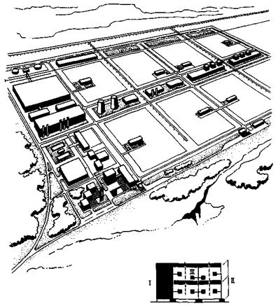 широкой кооперации предприятий между собой и с селитебной частью города по совместному использованию обслуживающих хозяйств.