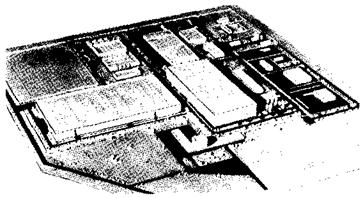 В любом случае компоновка зданий из однотипных строительных элементов и технологических блоков унифицированных параметров и структуры, на основе единых планировочных правил предопределяет наличие многих общих черт в их архитектурном облике и создает предпосылки для ансамблевого решения застройки (рис. 21).