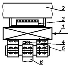 1 - кабельная муфта; 2 - кабель; 3 - фиксирующее устройство; 4 - неподвижно закрепленная деталь; 5 - упругий элемент; 6 - фиксирующий хомут