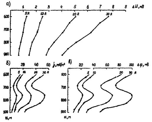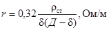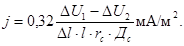 где DU1 и DU2 - величины падения напряжения на концах исследуемого участка анодной зоны, измеренные двухконтактным зондом, В; l - длина второго участка, м; Dl - расстояние между контактами зонда (обычно 7,5 м), м; rc - продольное электрическое сопротивление 1 м обсадной трубы ом/м; Дс - диаметр обсадной трубы, м.