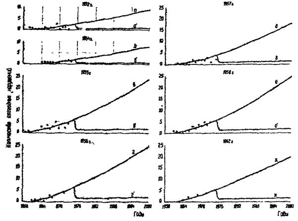 1.2.9. Прогнозирование динамики ежегодных нарушений обсадных колонн производится на базе фактических динамических рядов количества ежегодных нарушений для каждой группы скважин определенного возраста*. Для этого динамические ряды аппроксимируются математической зависимостью вида