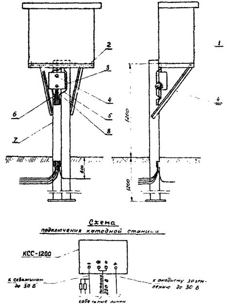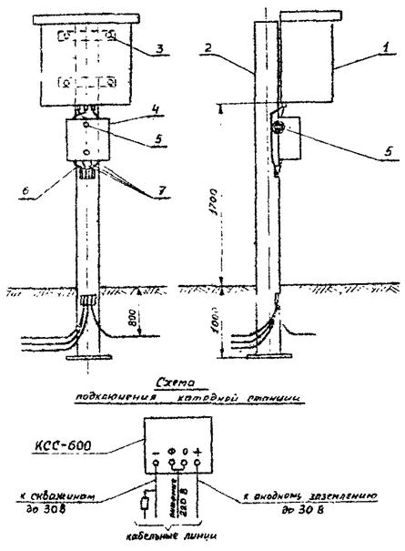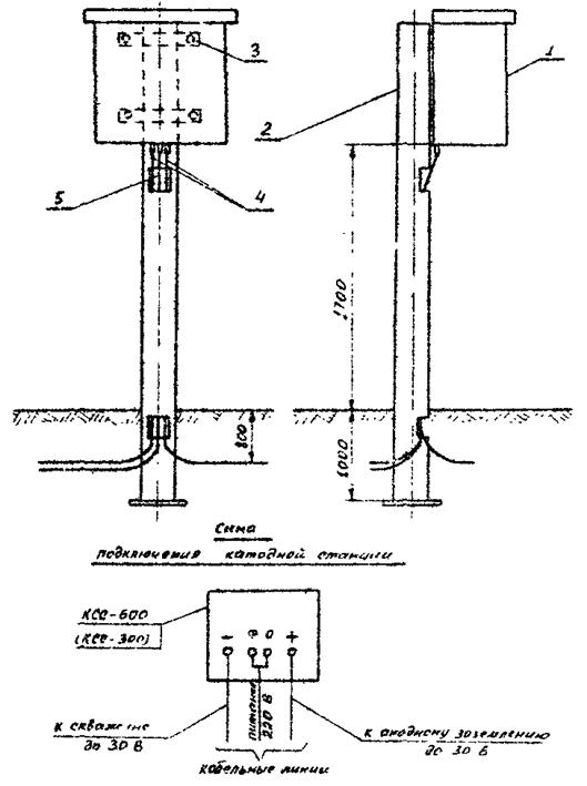 2.1.4. При индивидуальной защите одна или несколько смежных скважин с помощью кабельных дренажных линий подключается к катодной установке, состоящей из СКЗ и анодного заземления (приложение 2, рис. 8 - 12).