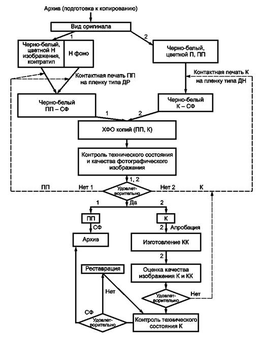 Рисунок А1 - Технологический процесс изготовления СК кинодокументов в зависимости от вида оригинала