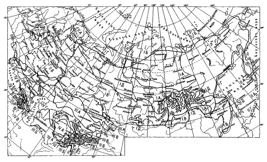 Рисунок 3.1 - Схематическая карта районирования северной строительно-климатической зоны (рекомендуемая)
