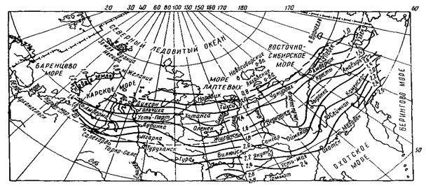 Изолинии глубин сезонного оттаивания грунтов