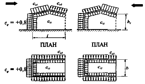 h/200 - при стенах, облицованных естественным камнем, из керамических блоков, из стекла (витражи), где hs - высота этажа, а для одноэтажных зданий с мостовыми кранами - высота от верха фундамента до низа балок кранового пути.