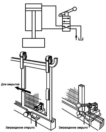3.9 устройство блокировки (запирания) ограждения: Механическое устройство для удерживания ограждения в закрытом и запертом положениях до тех пор, пока не минует опасная ситуация, возникающая при работе пресса.