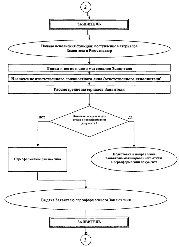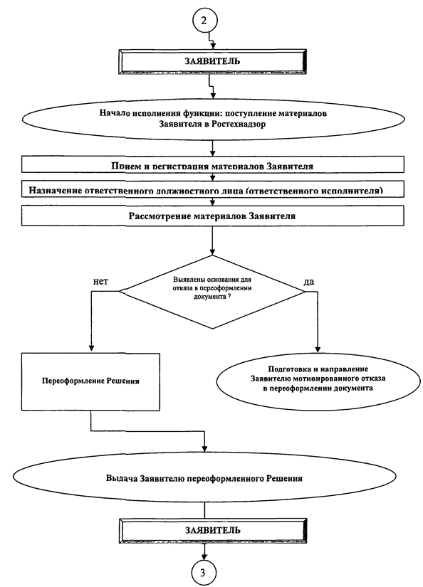 Описание последовательности и состава административных действий Ростехнадзора, территориального органа Ростехнадзора при осуществлении административной процедуры по переоформлению Решения