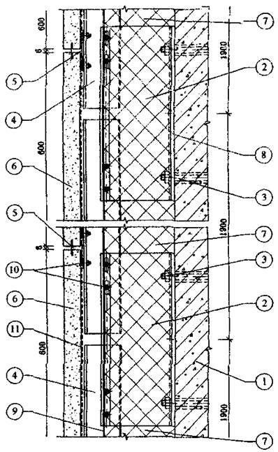 2.17.2. Кроме того, в случае необходимости, для облицовки и утепления цокольной части зданий внешний слой фасадной системы может быть выполнен в виде монолитной железобетонной панели толщиной от 40 мм, отформованной в опалубке, установленной относительно слоя утеплителя на расстоянии равном толщине панели.