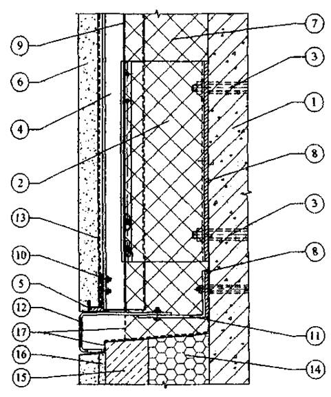 Рис. 3.2 Вертикальный разрез по температурному шву антивандальной фасадной системы с армированным штукатурным слоем на основе системы «ХАНТЕР-СТАР».