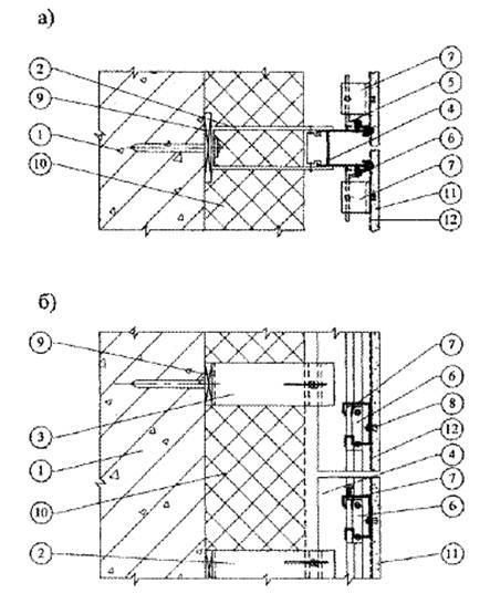 2.12. Применение в навесных фасадных системах конструктивного каркаса из алюминия или тонкостенного гнутого стального профиля может привести к его деформации от вандальных воздействий. Поэтому для первых этажей зданий целесообразно использовать усиленные профили устанавливаемые с более частым шагом.