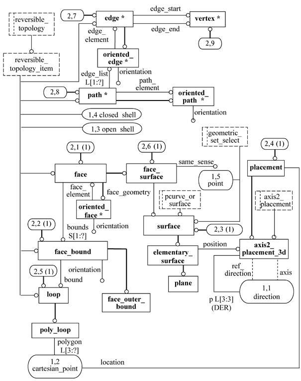 Данная прикладная интерпретированная конструкция предоставляет непротиворечивое множество геометрических и топологических объектов для определения моделей многообразия тел с плоскими гранями, ребрами, определенными в неявной форме, и вершинами. Границы граней в В-rep моделях задаются объектами poly_loop, и каждая грань должна иметь внешнюю границу, заданную в явной форме.