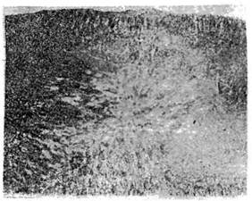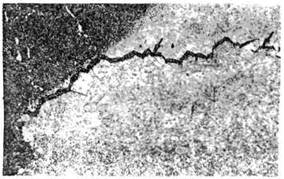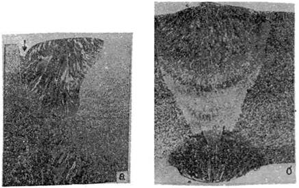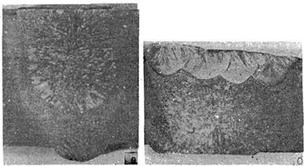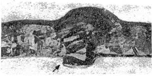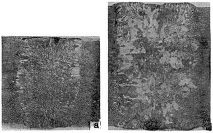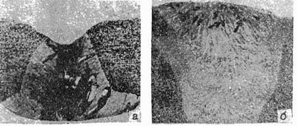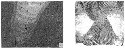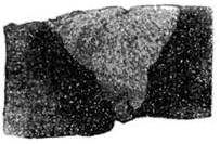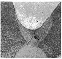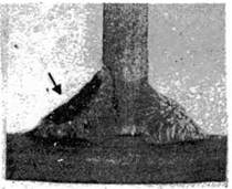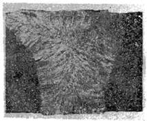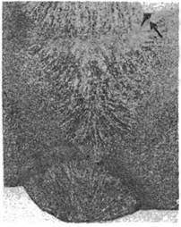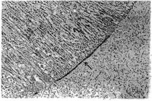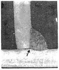 Ослабленный стык зон столбчатых кристаллитов, растущих навстречу друг другу от линии сплавления |