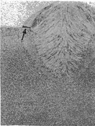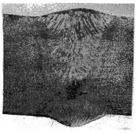 В кратере обнаруживаются усадочные рыхлоты, часто переходящие в трещину |