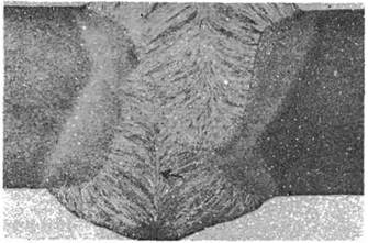 Рис. 85. Структура алюминия АДО при аргонодуговой сварке плавящимся электродом: