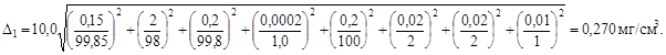 Расчет погрешности приготовления аттестованного раствора АС4-УВ и АС1-СК D1, мг/см3, выполняют по формуле