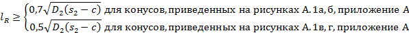 lR - исполнительная длина укрепления стенки рубашки в месте сопряжения с помощью конуса или расстояние от первого кольцевого шва до отбортовки, мм;