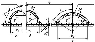 а - полукруглое сечение с V-образным швом; б - полукруглое сечение с угловым швом;
