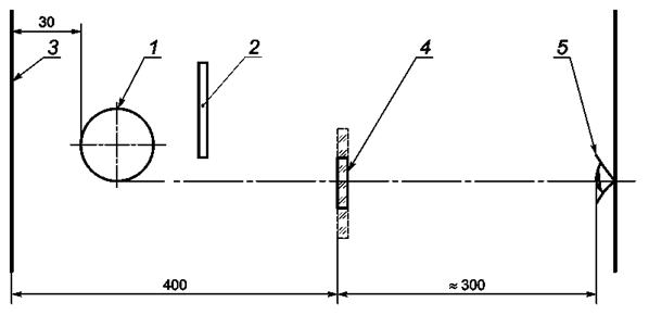 5.1.1.1. Испытание на сферическую рефракцию и астигматизм проводят на установке, принципиальная оптическая схема которой приведена на рисунке 1.