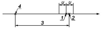 в точках нанесения удара 3, 4 |