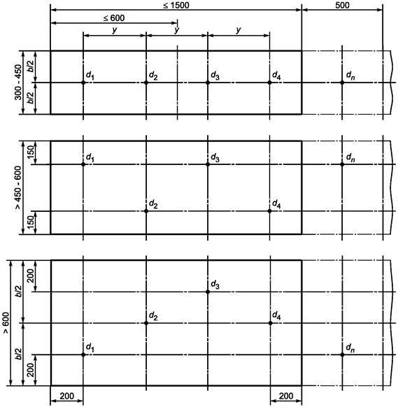 Измерения толщины d1, d2, ... dn проводят в точках, расположение которых показано на рисунке 2.