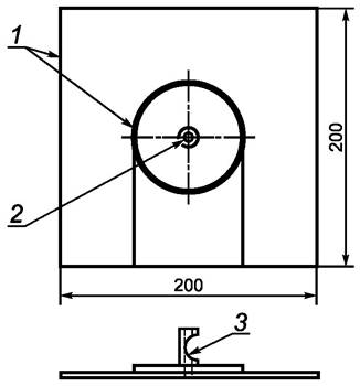 Пластину, создающую заданное давление, изготавливают из прозрачной пластмассы или другого, пригодного для этой цели материала. Квадратная пластина со стороной 200 мм должна быть снабжена упором для большого пальца. Общая масса пластины и упора должна быть 198 - 210 г, что создает давление (50 ± 1,5) Па (см. рисунок В.1).