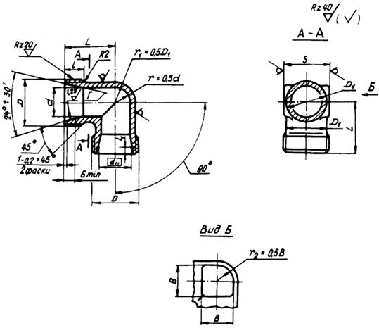 2. Конструкция и размеры проходных угольников должны соответствовать указанным на чертеже и в таблице.